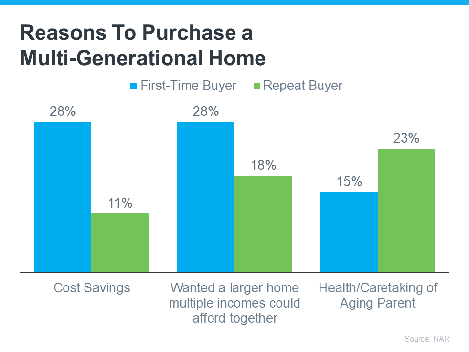According to the National Association of Realtors (NAR), two of the top reasons buyers are opting for multi-generational homes today have to do with affordability (see graph below):